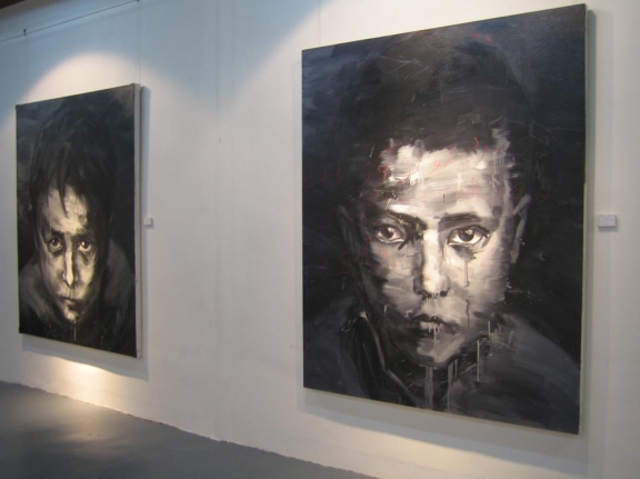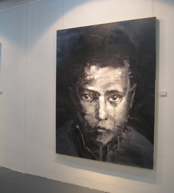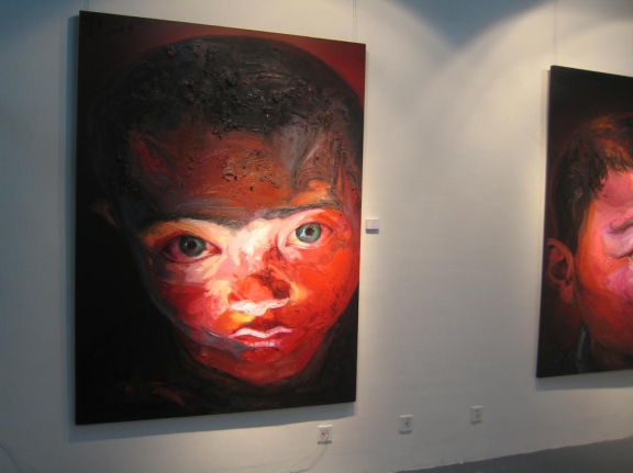 I have chosen "Red and Black" as the exhibition title, for these characters are particularly suitable to describe the exhibited artworks. In these artworks you can view a man staring with longing eyes while he is held captive behind barbed wires, children who are victims of an earthquake, Uighur children with confused but bright eyes, scenes of storm...