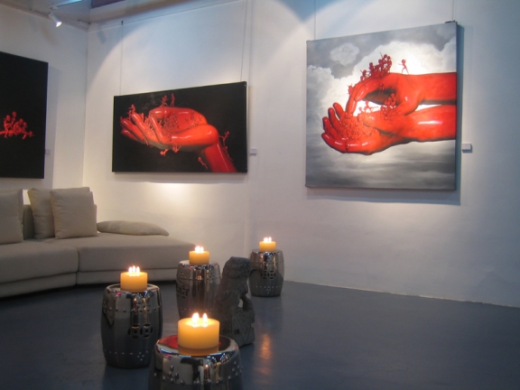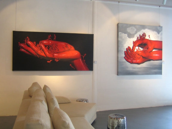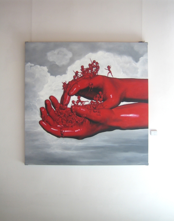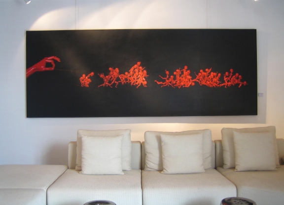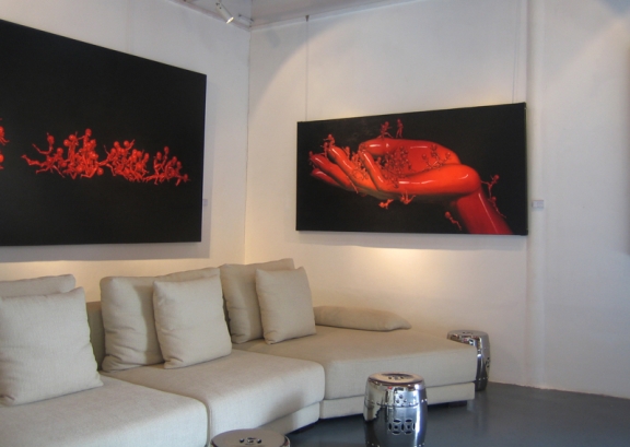 This time Soemo Fine Arts choose only two Artists for this exhibition, both born north of the Yangtze, 4 years apart in the late 60th and early 70th, found their success rather late in comparison with the young shooting stars of the Chinese contemporary Art Scene. Both Artist main themes are the powerless in the new Chinese Society, the ones who are living on the edge of Society, pictured as small red men by Shi Li Feng or prostitutes who are in a vicious circle, by Zhang Haiying.