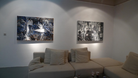 Zhao Dewei groped constantly for a unique creative language, if we say his 1980s works was influenced by Berlocq, but he finally got rebirth in 2006, from then on, there's no more early minimalism in new works, but concerned the most ordinary people's living conditions: from the pedestrian street to breakfast shop, or the crowds and the cars of congestion, he used his unique technique telling the noisy era.