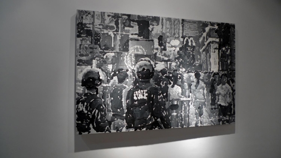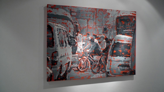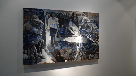 Zhao Dewei groped constantly for a unique creative language, if we say his 1980s works was influenced by Berlocq, but he finally got rebirth in 2006, from then on, there's no more early minimalism in new works, but concerned the most ordinary people's living conditions: from the pedestrian street to breakfast shop, or the crowds and the cars of congestion, he used his unique technique telling the noisy era.