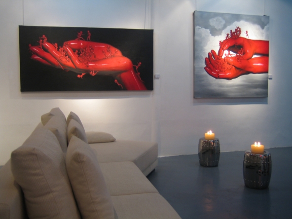 This time Soemo Fine Arts choose only two Artists for this exhibition, both born north of the Yangtze, 4 years apart in the late 60th and early 70th, found their success rather late in comparison with the young shooting stars of the Chinese contemporary Art Scene. Both Artist main themes are the powerless in the new Chinese Society, the ones who are living on the edge of Society, pictured as small red men by Shi Li Feng or prostitutes who are in a vicious circle, by Zhang Haiying.