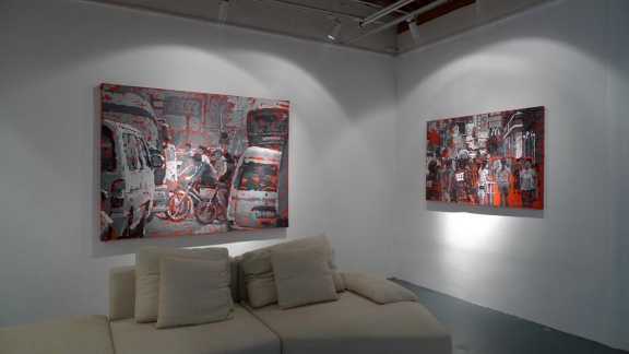 Zhao Dewei groped constantly for a unique creative language, if we say his 1980s works was influenced by Berlocq, but he finally got rebirth in 2006, from then on, there's no more early minimalism in new works, but concerned the most ordinary people's living conditions: from the pedestrian street to breakfast shop, or the crowds and the cars of congestion, he used his unique technique telling the noisy era.